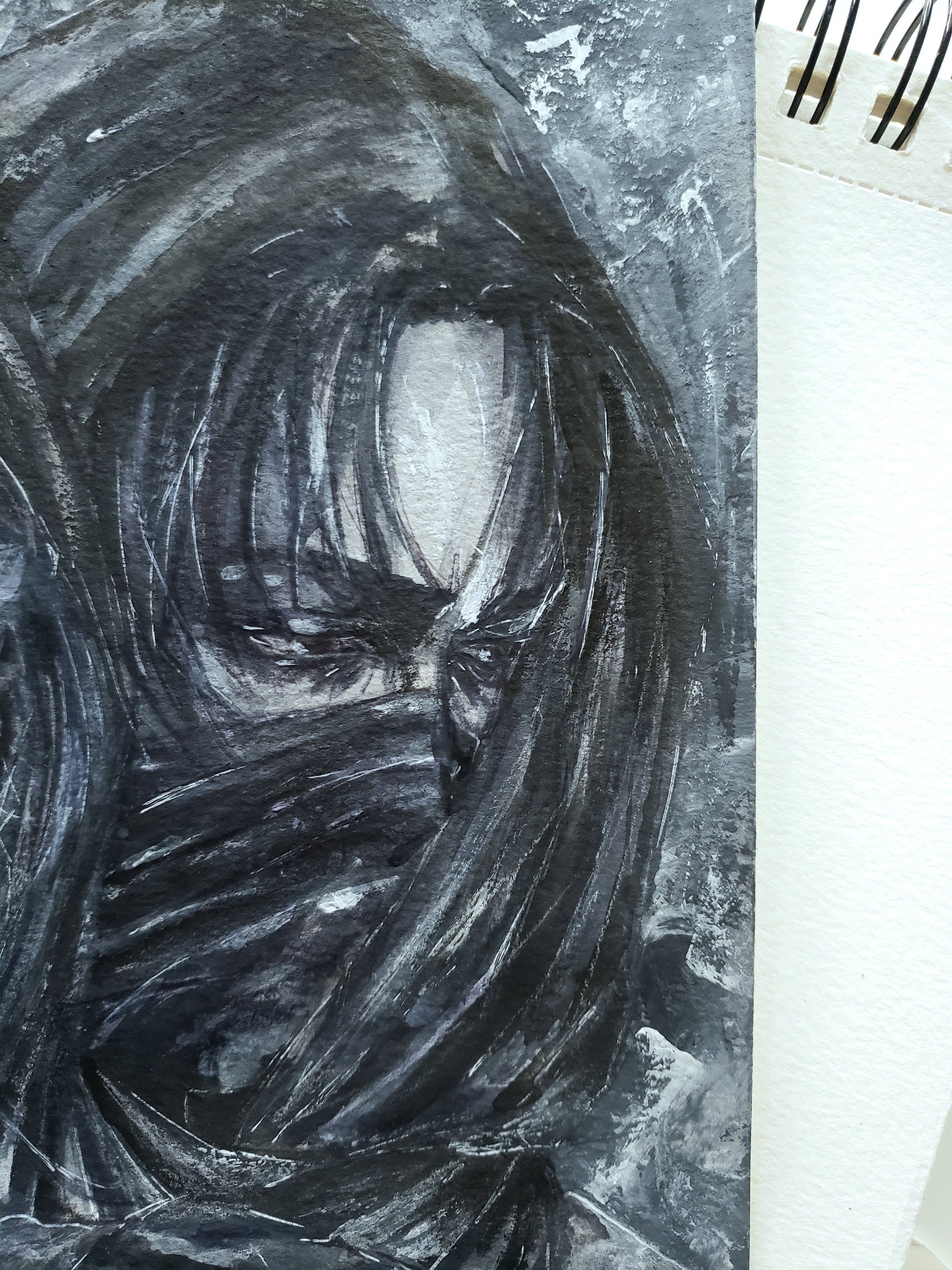 Peinture sur papier aquarelle 300gr (140 lb) en format A4, 21 x 29.7 cm ou environ 8 x 10 inches. Elle est réalisée avec un mélange d'aquarelle et acrylique.